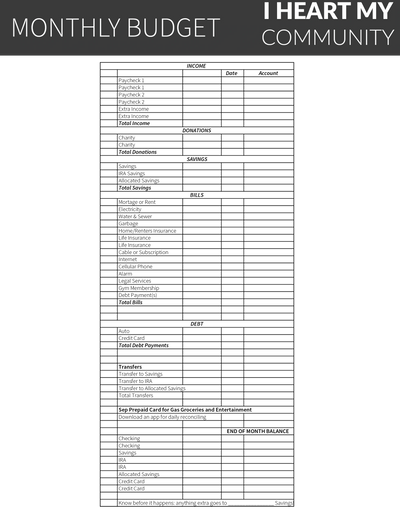 Just being aware of what you are spending and where you are spending it is a great first step. There are many online budget solutions available online. However printing a worksheet, scratching it up and starting to get in the habit of not forgetting important line items (even if it is only $1 towards them) will help get you in the habit of preparing for each item. We have put together the following printable worksheet to help get you thinking about your budget.